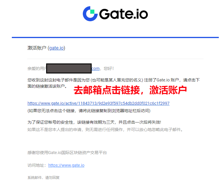 账号创建成功后,页面会弹出提示框,此时需在注册邮箱中点击收到的链接激活账户。